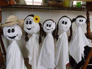 | I am trying to decorate for the holiday/seasons a little better. These ghosts were so fun. Maybe I went overboard with my friendly ghost family when I made one of me, Judd, and Scott. :) |